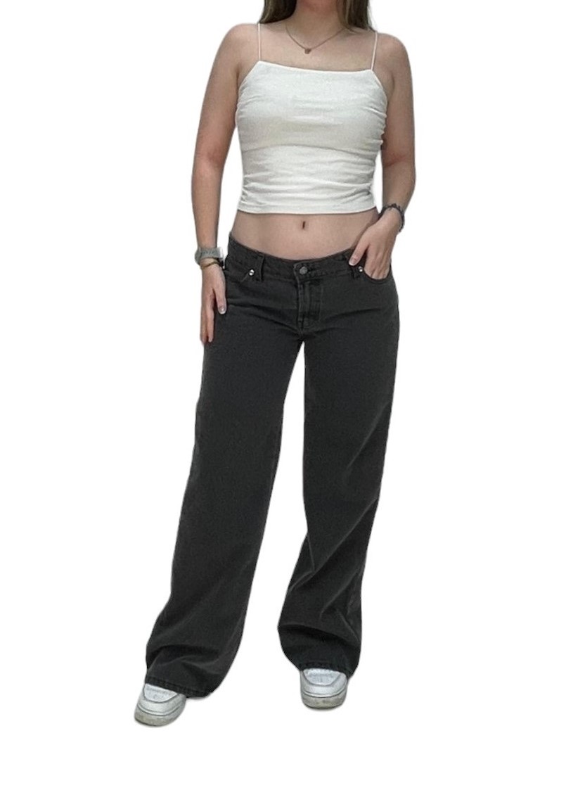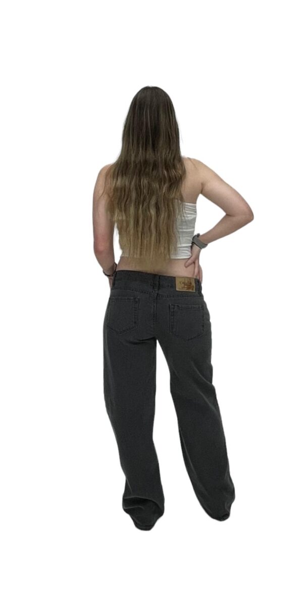 Su cintura baja y bajo ancho crean una silueta relajada y elegante, perfecta para acompañarte tanto en tus looks más casuales como en tus momentos más especiales.