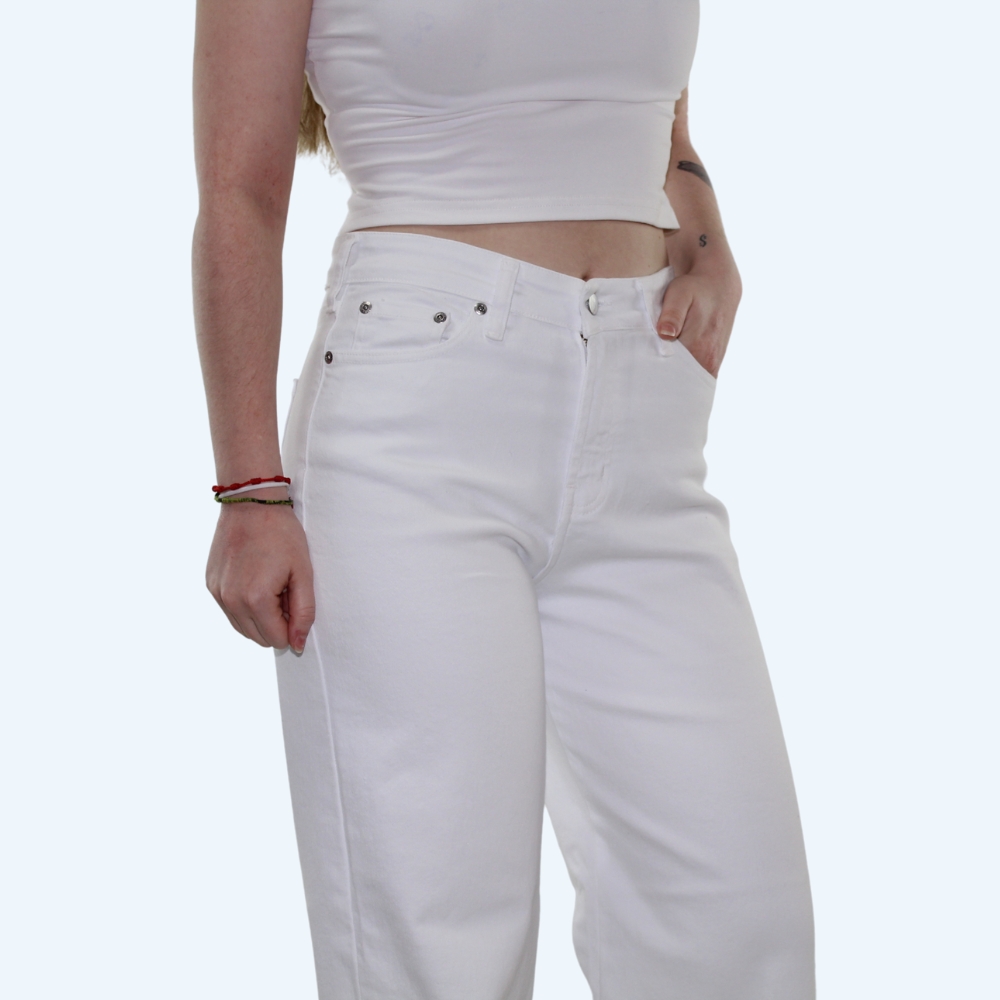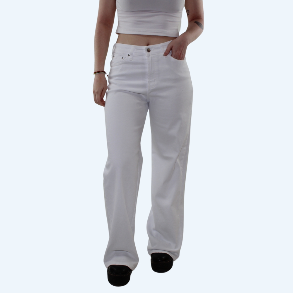 Su corte de caja media y el bajo ancho estilizan sin esfuerzo, ofreciendo libertad de movimiento y una silueta favorecedora. Confeccionados en un tejido de algodón con un ligero toque de elastano, aseguran comodidad sin perder forma con el uso.
